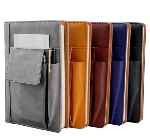 2024 nuevo diseño bolsillos multifunción Cuadernos de negocios cubierta de cuero PU personalizada venta al por mayor diario suministros de oficina